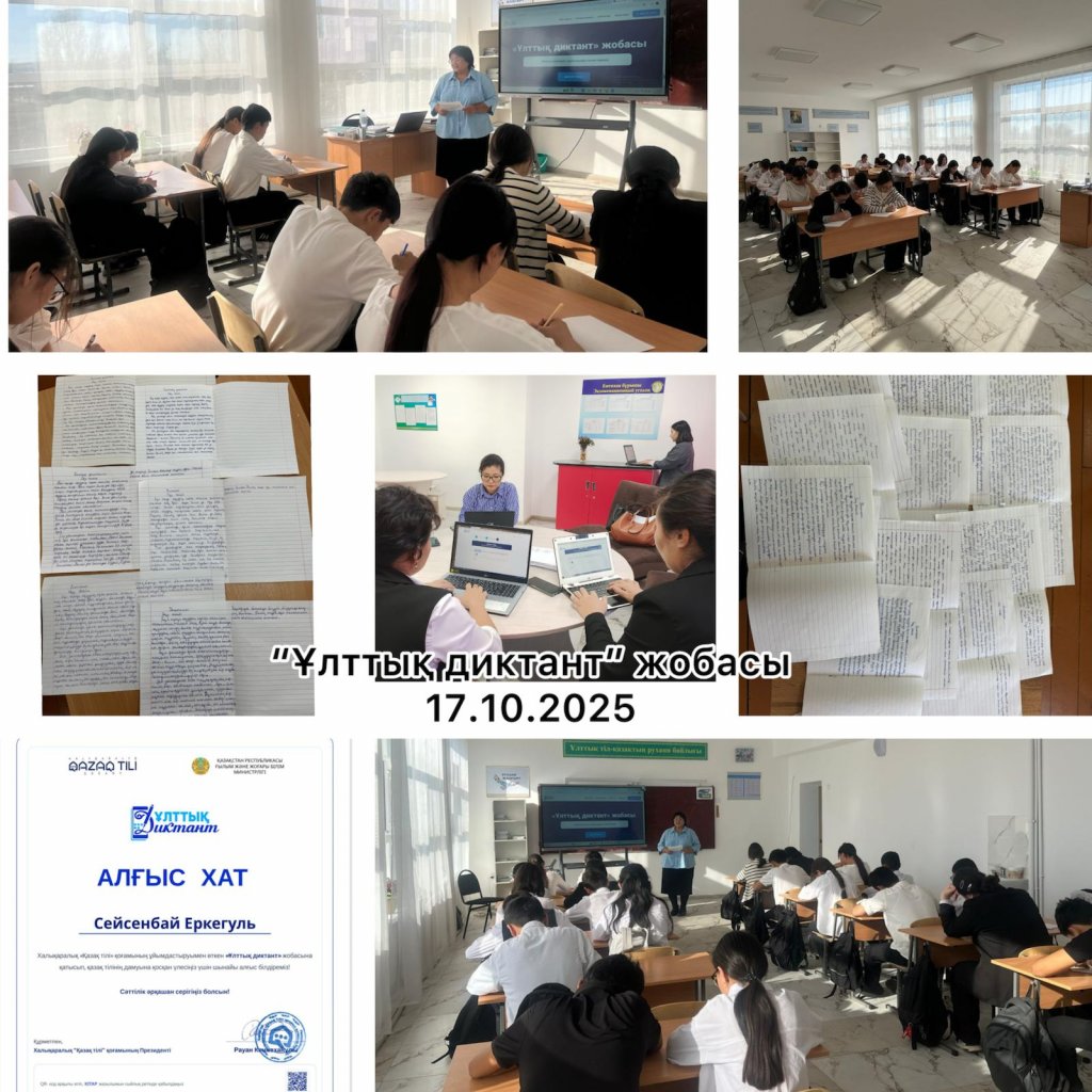 Мектебімізде 2025 жылдың 17 қазан күні мектебіміздің оқушылар мен ұстаздары, Халықаралық қазақ тілі қоғамы және Тіл қазына орталығы бірлесе қолға алған ерекше «Ұлттық диктант» бастамасы жобасына қатысып диктант жазыды. Бұл іс-шара қазақ тілінде...