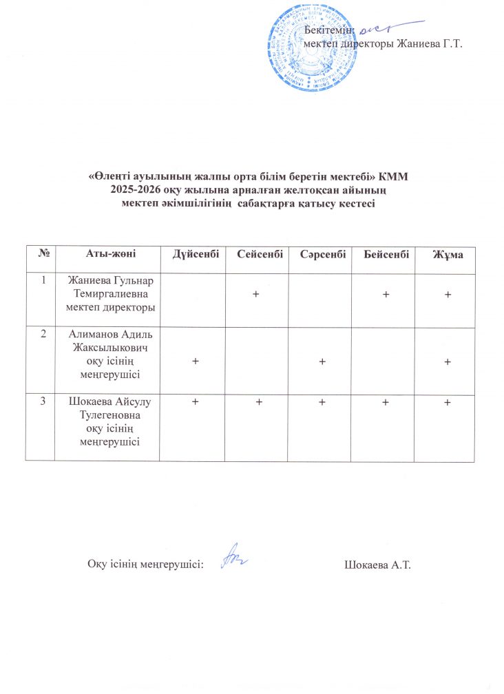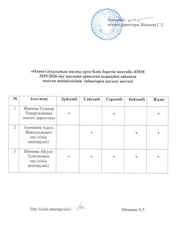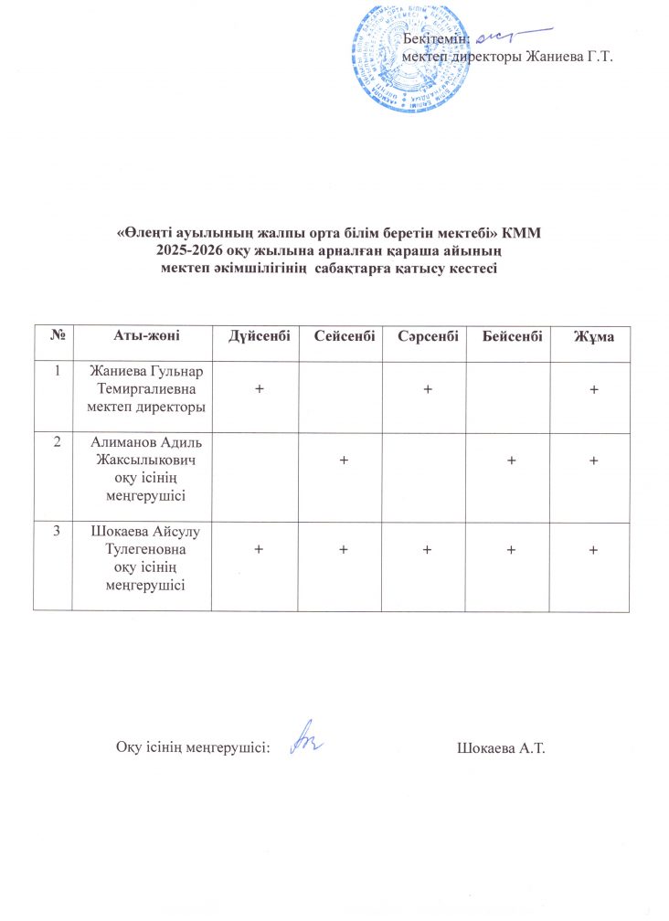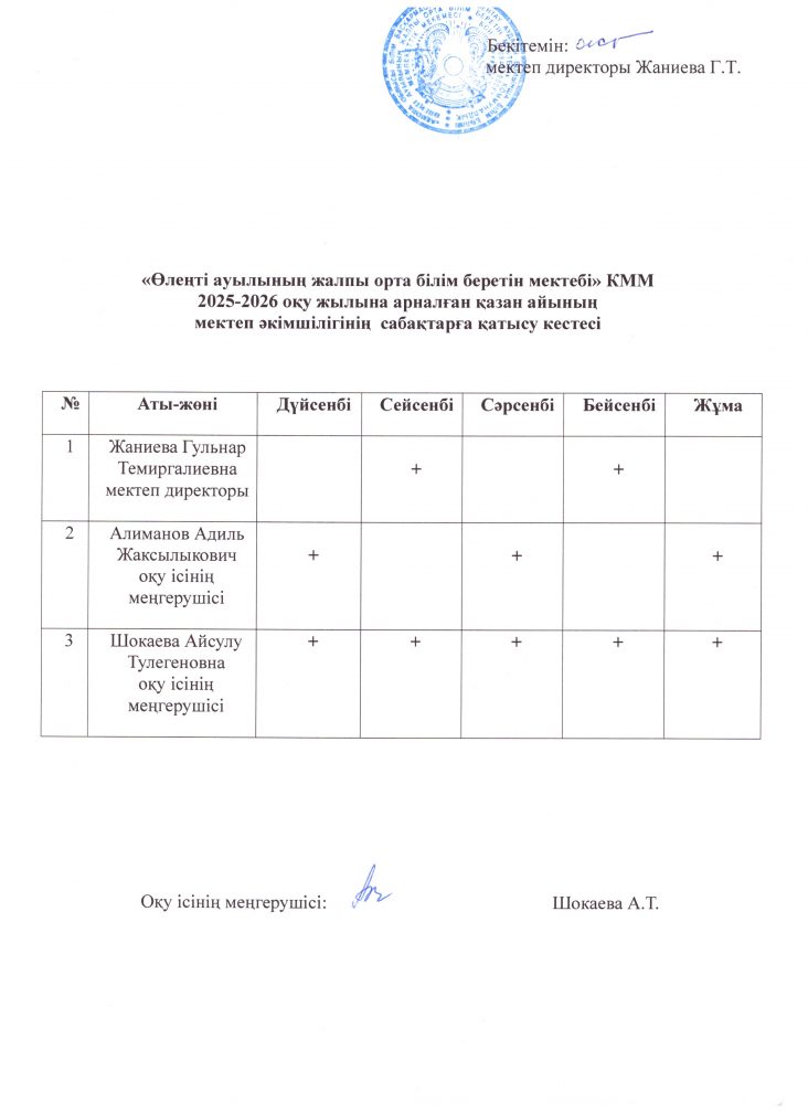 Әкімшілік тарапынан сабақтарға қатысу бойынша