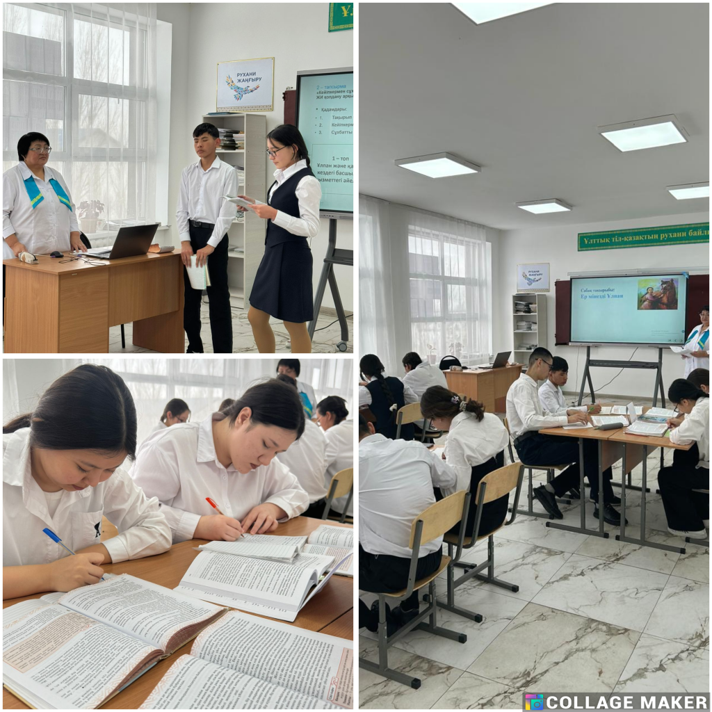 Гуманитарлық циклдің әдістемелік бірлестігінің мұғалімдер декадасы аясында 18 ақпан күні қазақ тілі мен әдебиеті пәні мұғалімі Залгаринова Алмагуль Имангалиевна 9 «А» сынып оқушыларымен «Ер мінезді Ұлпан» атты ашық сабақ көрсетті....