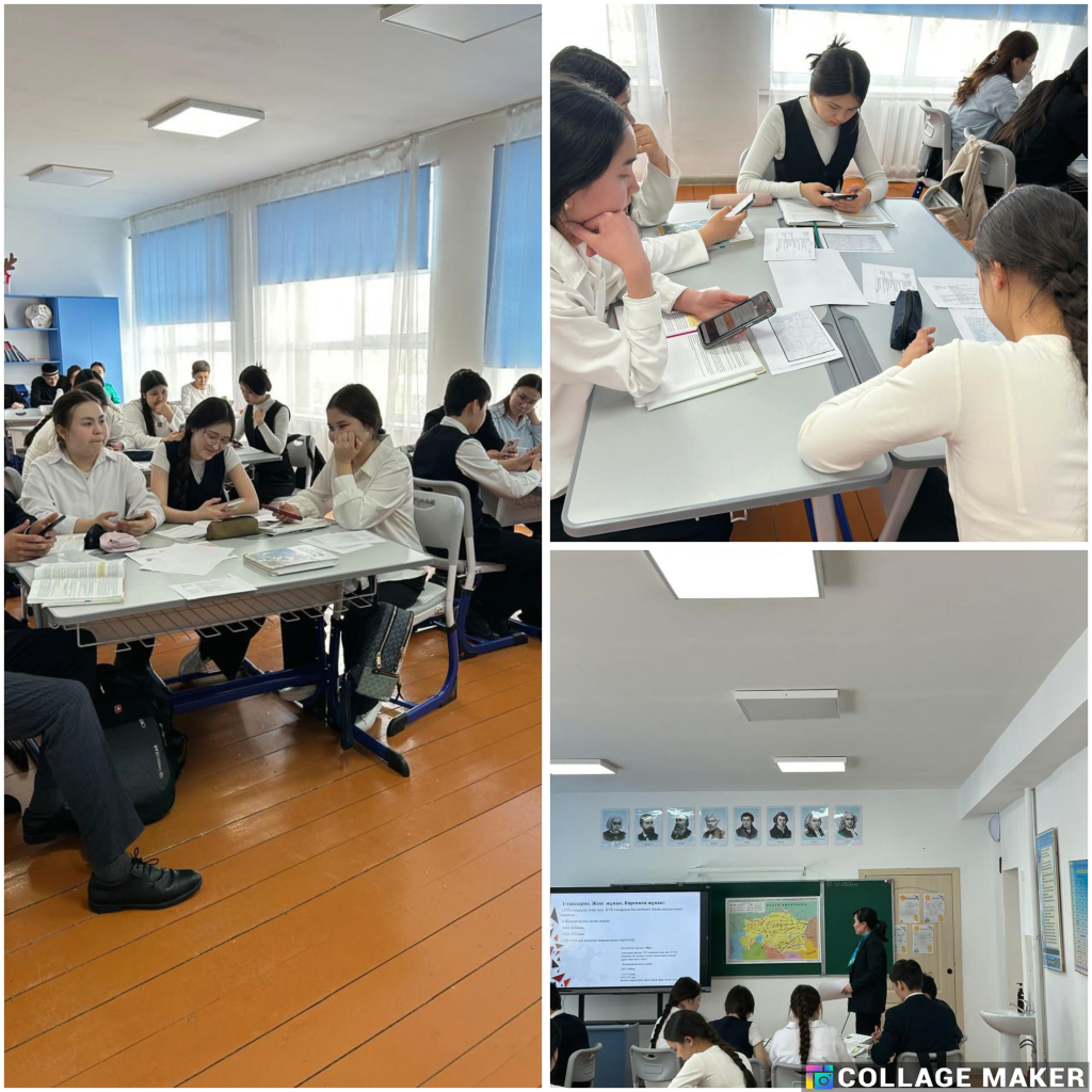 Гуманитарлық циклдің әдістемелік бірлестігінің мұғалімдер декадасы аясында тарих пәні мұғалімі Елюбаева Айгерим Сайлауовна 10 сыныбында «Құтты жерді қорғау мен сақтаудағы ата-бабалардың рөлі» атты ашық сабақ көрсетті.