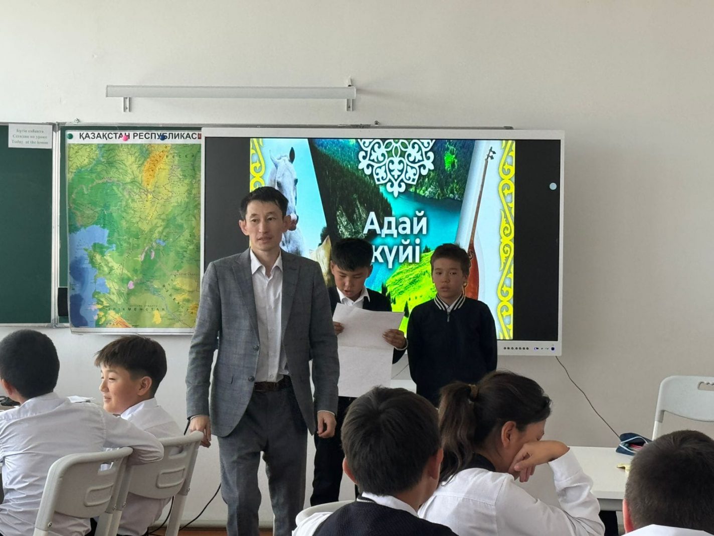 2025 жылдың 10 қазан күні Эстетикалық цикл мұғалімдерінің апталық жоспарға сәйкес 6 сыныбында қазақтың кәсіби музыкасы «Дәстүрлі күйшілік өнер» атты ашық сынып сағаты өтті. Сабақты өткізген музыка пәні мұғалімі Хуралхан Бахытқан Хуралханұлы. Сабақ барысында оқушылар – қазақ халқының кәсіби күйшілік өнерімен танысып, күйші, композиторлар Құрманғазы Сағырбайұлы, Тәттімбет Қазанғапұлы өмірбаяндарымен, шығармашылығымен танысып, «Адай», «Саржайлау» күйлерін тыңдап тамашалады