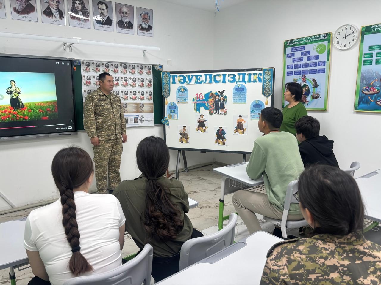 Қазақстан Республикасының Тәуелсіздік күні аясында «Өлеңті ауылының жалпы орта білім беретін мектебі» КММ-де бірқатар мазмұнды іс-шаралар ұйымдастырылды. Мектеп ұжымы мен оқушылар бұл мерекені ерекше рухта атап өтіп, ел тарихына, ұлттық құндылықтарға деген құрметті арттыруға бағытталған тәрбиелік жұмыстарға белсене қатысты. АӘжТД пәнінің оқытушысы Нұрбек Әкімжан Нұрбекұлы халық қаһарманы, жазушы, даңқты қолбасшы Бауыржан Момышұлының 115 жылдығына орай 9–11 сынып оқушыларына арналған тәрбие сағатын өткізді. Сабақ барысында оқушылар батырдың ерлік жолы, әскери-патриоттық көзқарастары, әдеби мұрасы туралы тың мәліметтер алып, оның өнегелі өмірінен үлгі алды. Бұл іс-шара жас ұрпақтың бойында отансүйгіштік сезімін қалыптастыруға, тарихи тұлғаларды құрметтеуге және ұлттық рухты нығайтуға бағытталды.