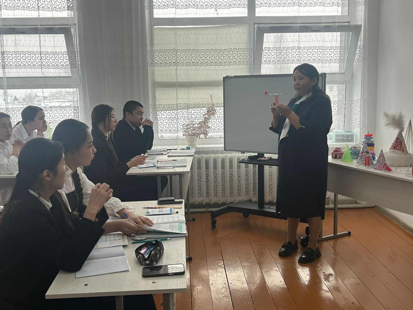 Жаратылыстану-математикалық цикл пәндерінің онкүндік жоспарына сәйкес 23 қаңтар күні математика пәні мұғалімі Охан Майрагуль 11 сыныппен «Конус және оның элементтері. Конустың жазбасы, бүйір және толық бетінің аудандары» атты ашық сабақ көрсетті.