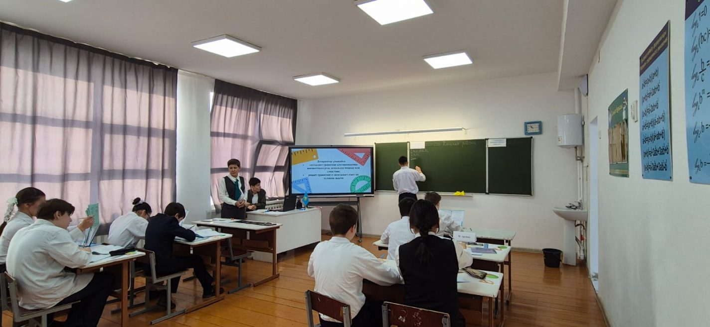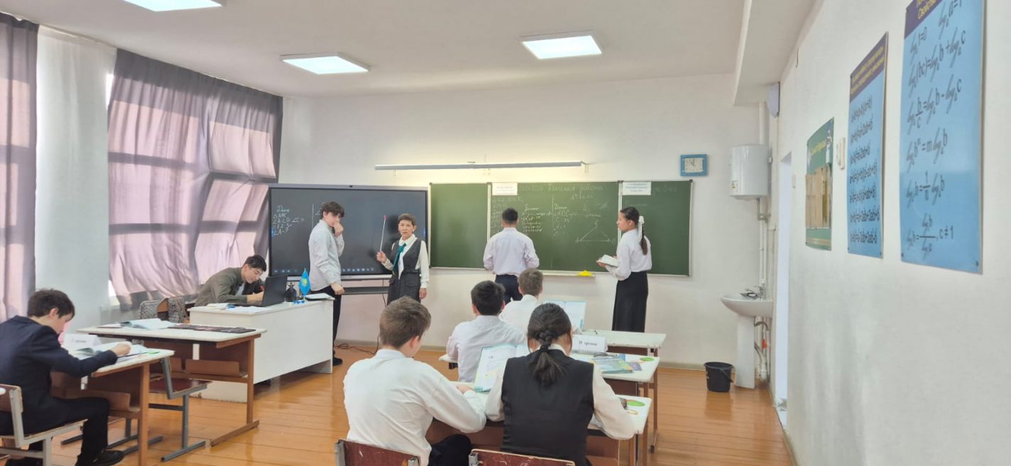 Жаратылыстану-математикалық цикл пәндерінің онкүндік жоспарына сәйкес 28 қаңтар күні математика пәні мұғалімі Азмагамбетова Бибигуль Секеновна 7 «Б» сыныппен «Сумма углов треугольника. Решение задач» атты ашық сабақ көрсетті.
