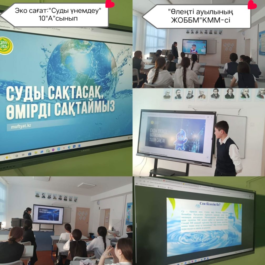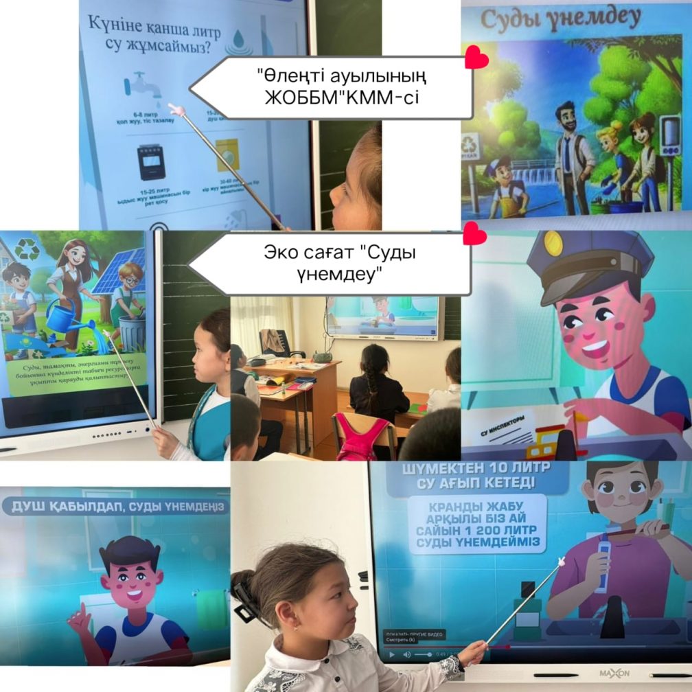 Оқушылардың тұлғалық дамуын, әлеуметтік бейімделуін, құқықтық және мәдени тәрбиесін қамтамасыз ету бойынша мектебімізде тәрбие жұмысы күнделікті белсенді атқарылуда. Тәрбие жұмысының негізгі бағыттары: азаматтық-патриоттық тәрбие, құқықтық мәдениет, денсаулық сақтау, шығармашылық және әлеуметтік белсенділік. Тәрбие жұмысының жоспарына сәйкес 30 қаңтар күні бастауыш және жоғары сыныптарда «Суды үнемде- болашақ үшін сақта!» атты экологиялық сағаттар өтті