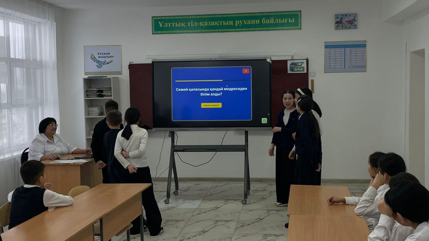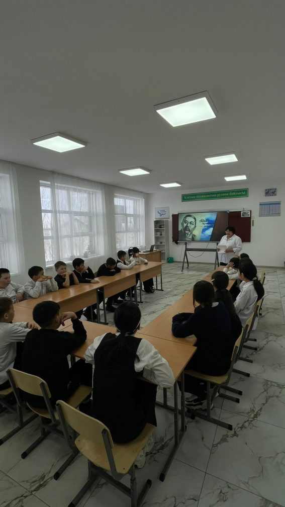 Гуманитарлық цикл әдістемелік бірлестік пәндерінің онкүндік аясында қазақ тілі мен әдебиеті пәні мұғалімі «Абай» клубының жетекшісі Залгаринова А.И. «Абай әлеміне саяхат» атты сыныптан тыс іс – шара өткізді. Іс-шараның негізгі мақсаты Абайды терең таныту арқылы Абай атамыздың қалдырған асыл мұрасын әр оқушының ой-санасына жеткізу, Абай шығармалары арқылы Отан сүйгіштікке, ұлтжандылыққа, адамгершілікке тәрбиелеу.