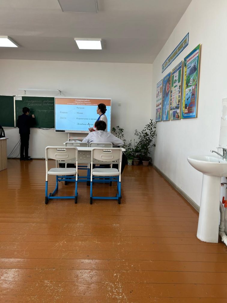 Гуманитарлық цикл бойынша әдістемелік бірлестігінің мұғалімдер декадасы аясында орыс тілі мұғалімі Бимжанова Айжан Кайрбековна 7 Б сыныбында « Глагольные словосочетания» атты ашық сабақ өткізді. Сабақтың мақсаты – оқушыларды ұсынылған мәселе бойынша диалогке қатысуға үйрету, өз пікірін дәлелдей отырып, тыңдалған материалды мазмұны бойынша бағалау, назар аудару үшін тілдік құралдарды, материалды баяндаудың құрылымы мен логикасын қолдану.