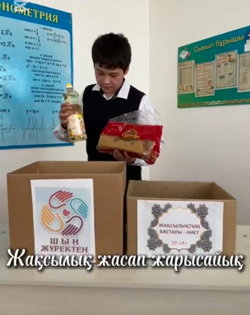 1 наурыз Алғыс айту күніне орай мектебімізде іс-шаралар жоспары құрылып бекітілді. Жоспарға сәйкес 2026 жылдың 25 ақпан күні 6-11 сынып араларында «Барлығы үшін рахмет» алғыс айту челленджі, 2026 жылдың 27 ақпанында 1-5 сыныптар арасында «Алғыс айтудан шаршамаймын» атты бейне құттықтаулар және 1-11 сынып оқушылары арасында «Жақсы істер жасауға асығыңыз» атты қайырымдылық акция өтті. Жақсылық жасау-адамның жүрегінен шығатын ең асыл қасиет. «Жақсылық істер жасауға асығыңыз» атты қайырымдылық акция аясында 10 сынып оқушылары шын жүректен шағын азық-түлік себетін жинап, ауылдағы көмек көрсетілетін зейнеткерлер отбасына апарды.