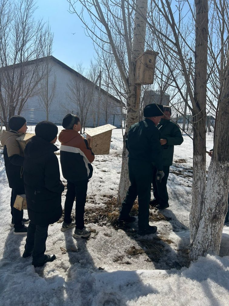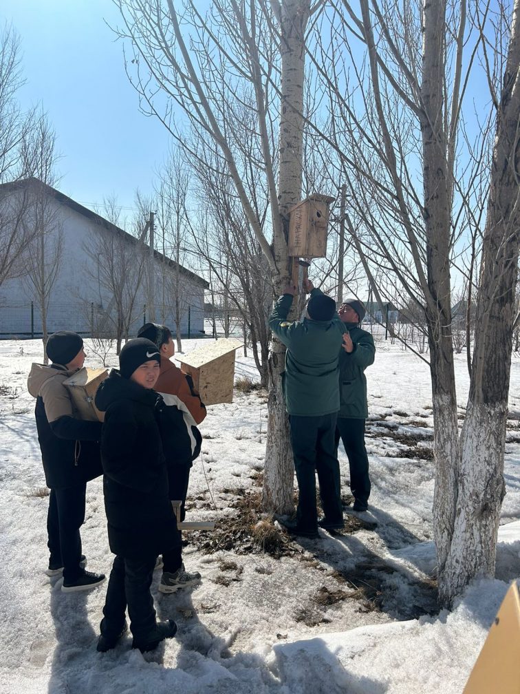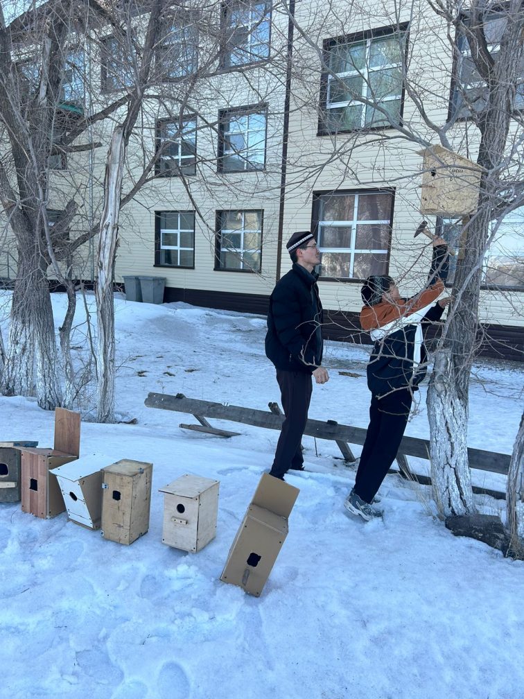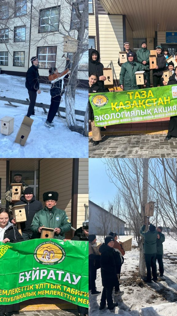 Осыған байланысты жылдық тәрбие жұмысының жоспары негізінде «Таза Қазақстан» экологиялық акция аясында технология пәні мұғалімі Хайрат Ержанат оқушылармен құстарға арналған ұяшықтар жасады. Белгіленген күні оқушылар өз қолдарымен жасаған ұяларды Ерейментау қаласының «Бұйратау» мемлекеттік ұлттық табиғи паркінің өкілдерімен бірігіп мектеп аумағындағы ағаштарға орнатты.